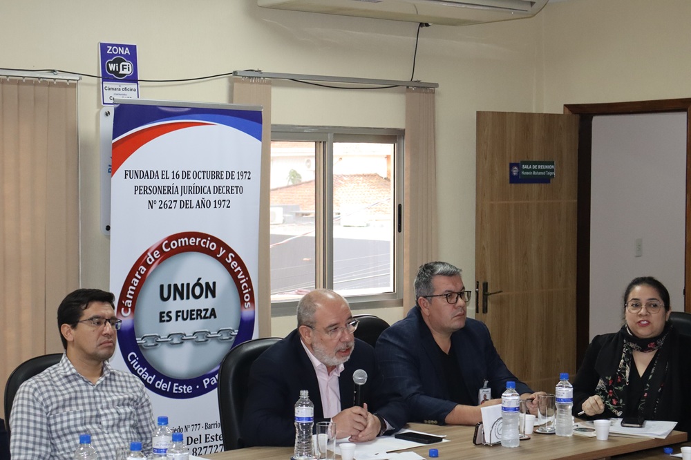 La Cámara de Comercio y Servicios de Ciudad del Este estuvo representada por su Presidente, Sr. Said Taigen, y su Vicepresidente, Sr. Pedro Céspedes, junto a directores y asesores institucionales como el Sr. Luis Ruiz Díaz, el Dr. Leonardo Díaz, la Dra. Myrian Morales, la Dra. Linda Taiyen, y los miembros de la comisión directiva Sr. Oscar Samudio, Sr. José María Ayala Cambra, Sra. Odila Báez y Sr. Nasser Aboutaif. En nombre de la comunidad empresarial regional, los representantes de la Cámara expusieron su posición sobre las prioridades de inversión y desarrollo, destacando la importancia de una infraestructura moderna y eficiente para potenciar la competitividad del Alto Paraná.