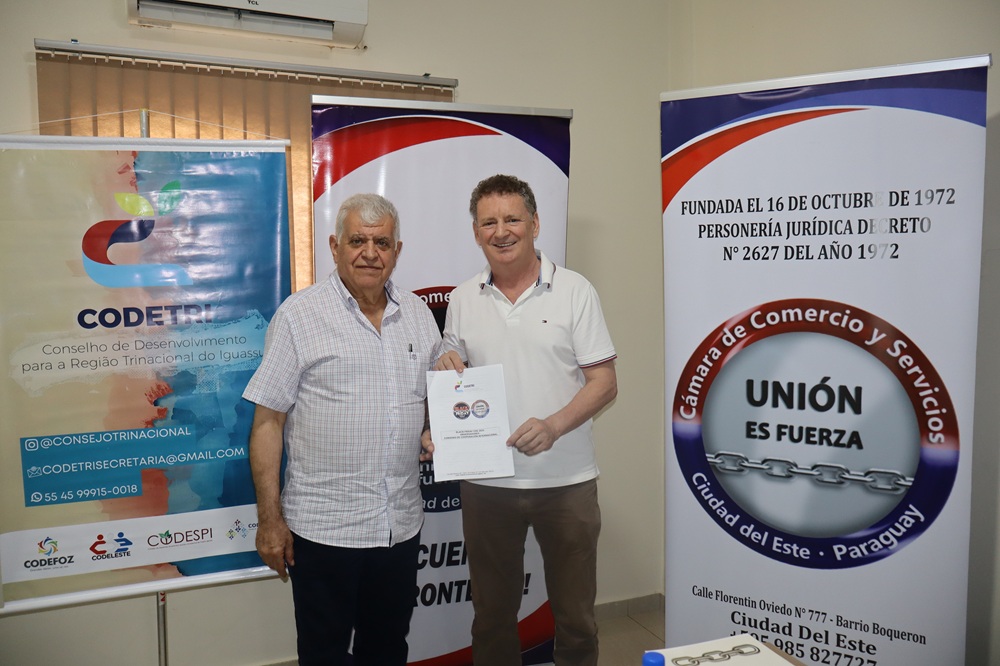 En un paso estratégico hacia la integración regional y el fortalecimiento del comercio transfronterizo, el Consejo de Desarrollo de la Región Trinacional de Iguazú (CODETRI) y la Cámara de Comercio y Servicios de Ciudad del Este (CCYSCDE) firmaron este 7 de noviembre un convenio de cooperación internacional. El acuerdo fue rubricado por los presidentes Roni Temp (CODETRI) y Said Mohamed Taigen (CCYSCDE), con el objetivo de coordinar acciones conjuntas en el marco del Black Friday CDE 2025, que se celebrará del 20 al 23 de noviembre en Ciudad del Este.